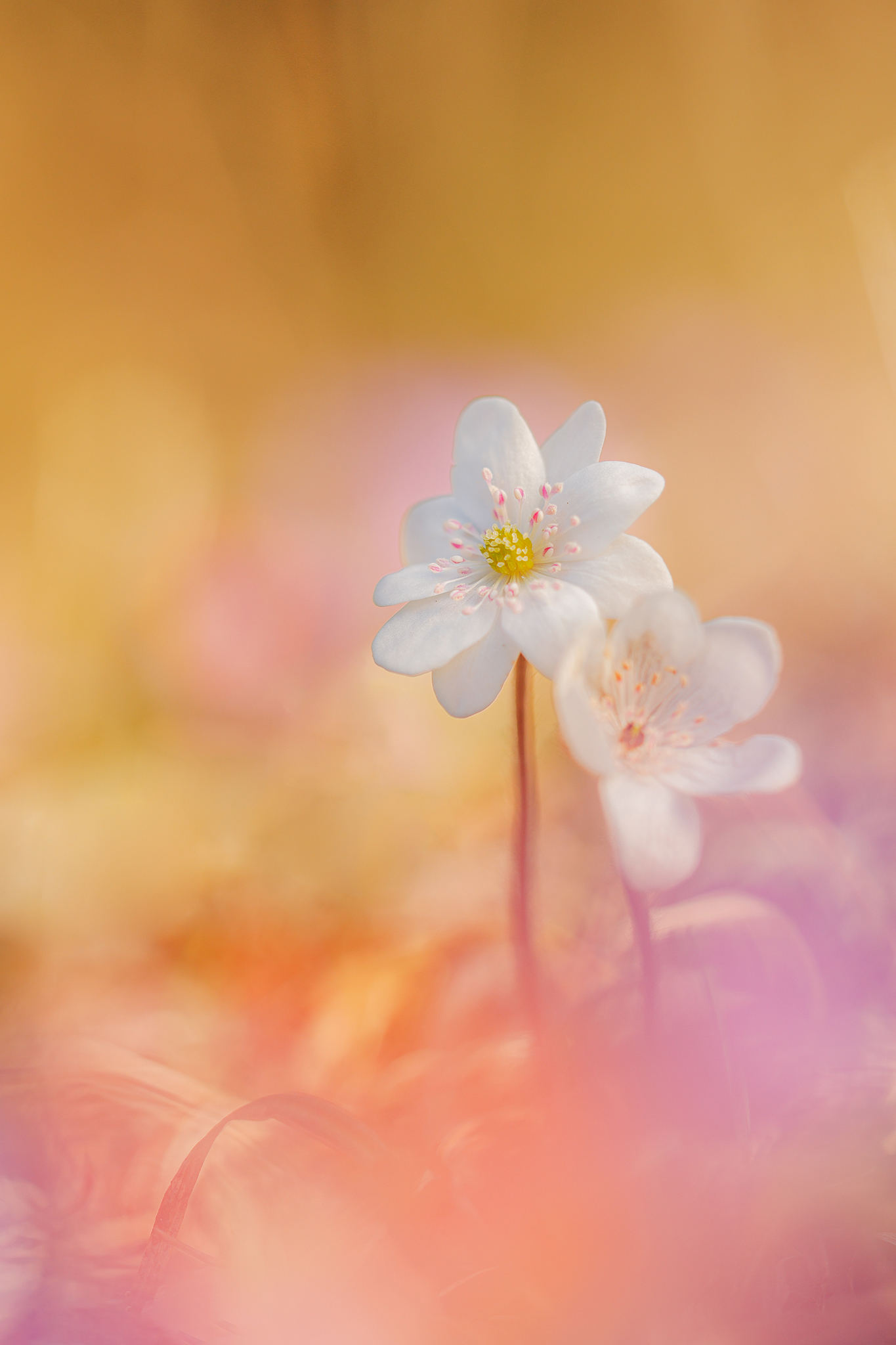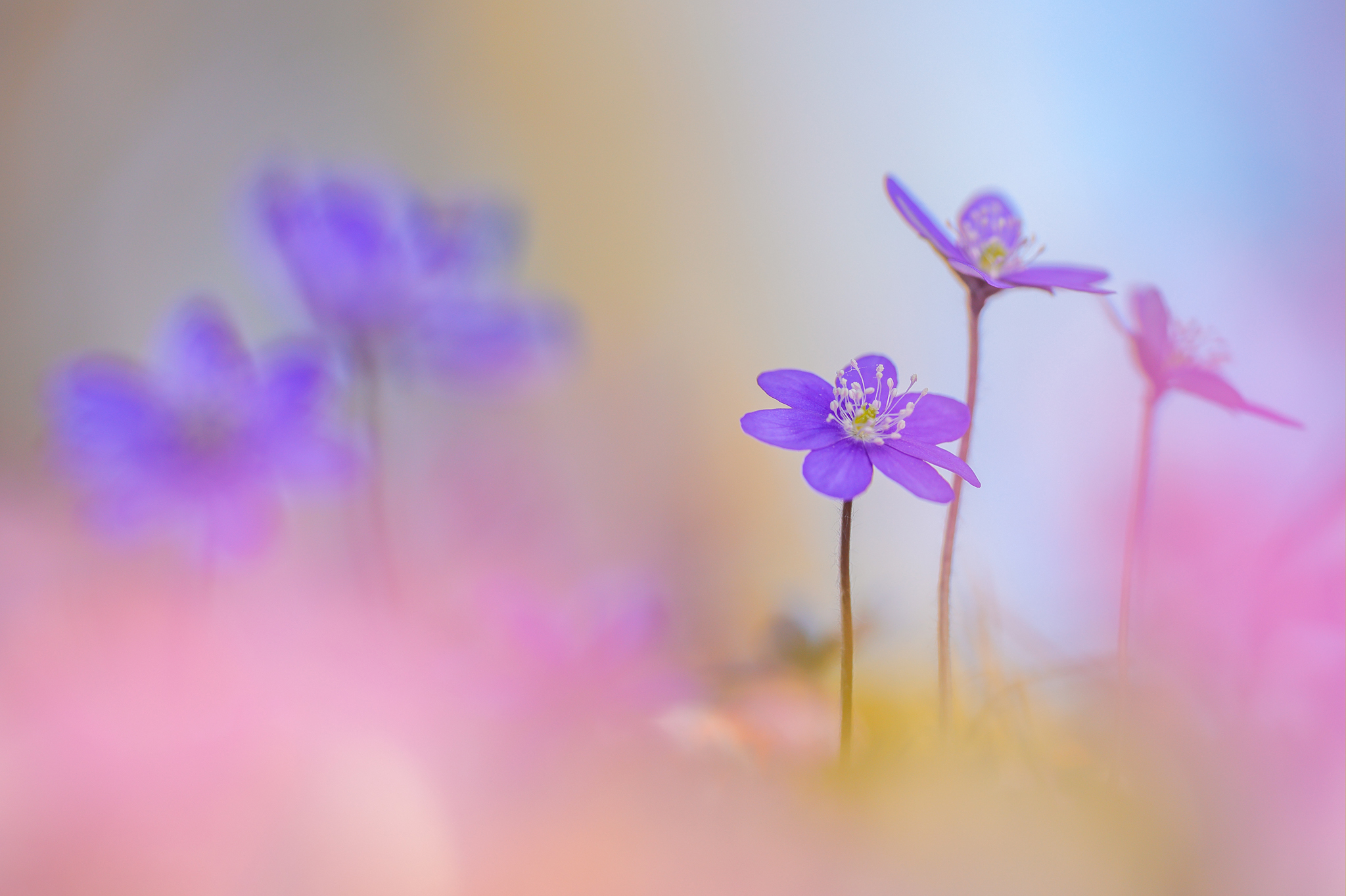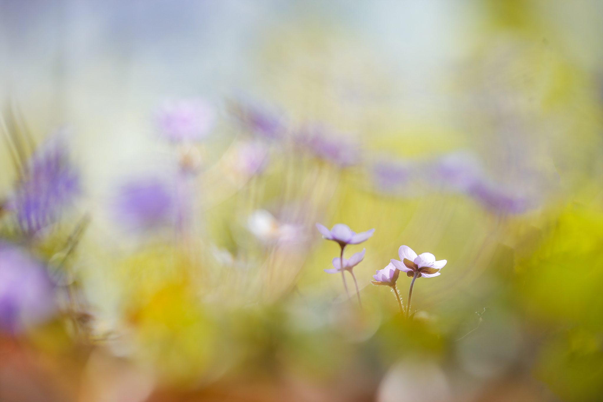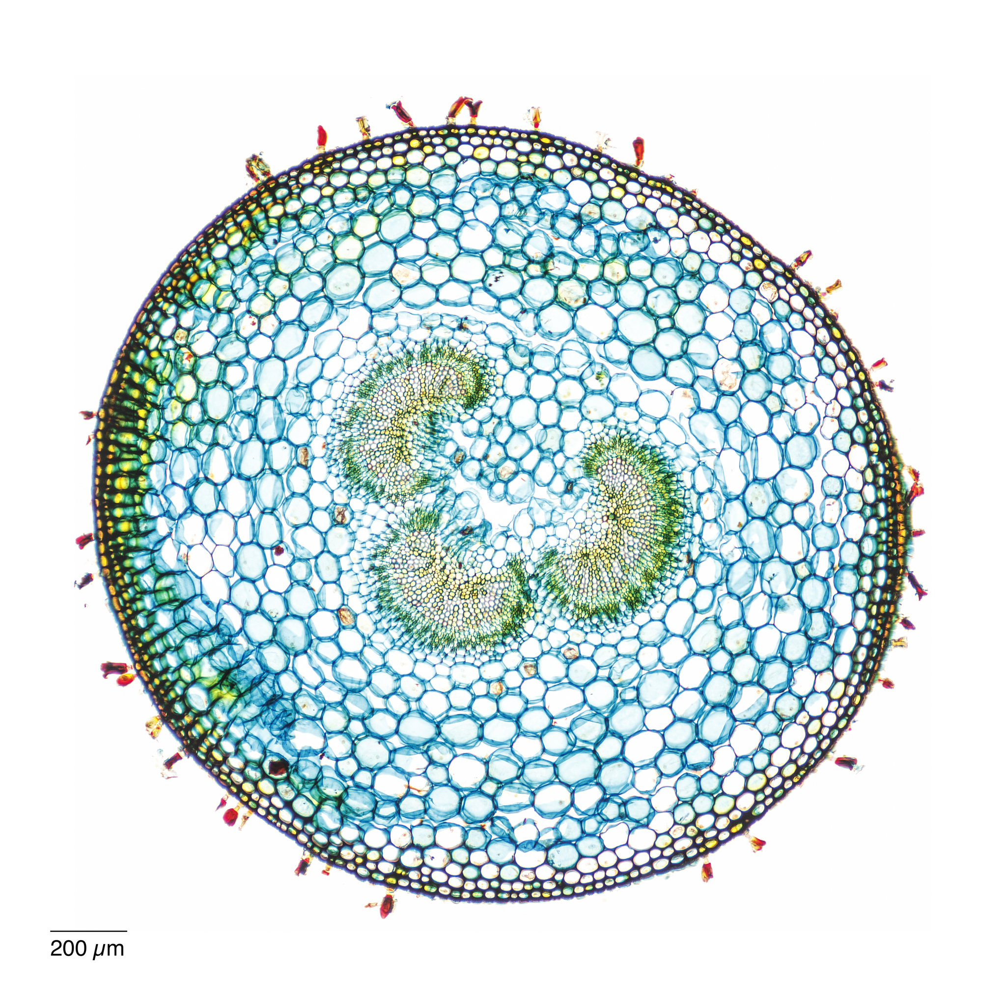 Die Leberblümchen gibt es in unterschiedlichen Farben – unter dem Mikroskop zeigt sich bei den Querschnitten der Blütenstiele und Blattstiele allerdings kein Unterschied. Je nach Alter der Blätter sind die Blattstiele innen hohl.